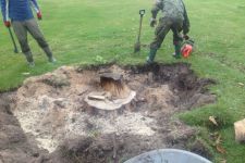 Kaevasime välja kännud, saagisime selliselt, et maapinnale nad enam ei ulatuks (kahjuks osutus välja kaevamine liiga kõvaks pähkliks).
